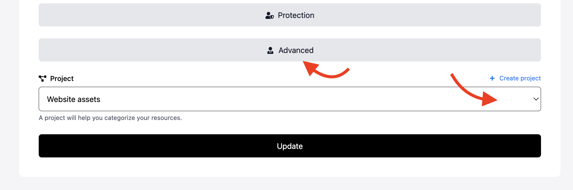 3. In the tab "Advanced", you will see a dropdown and there you can select the project you want to connect your short link to.